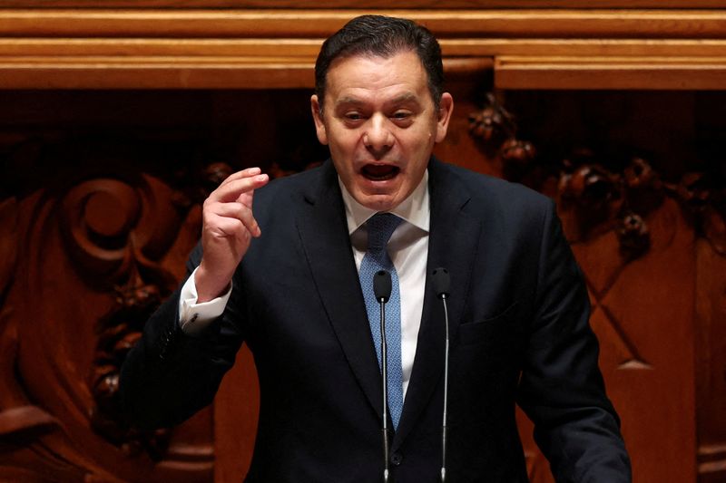 FILE PHOTO: Portuguese Prime Minister Luis Montenegro speaks during a debate on the new government programme at the Portuguese parliament, in Lisbon, Portugal, April 11, 2024. REUTERS/Pedro Nunes/File Photo
